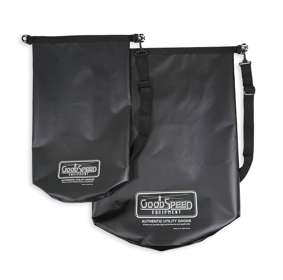 GOODSPEED equipmentオリジナルロゴがあしらわれた、容量約20Lのレインバッグ。ターポリン素材(PVC)を使用し、接合部をすべて溶着した防水ダッフルバックになります。