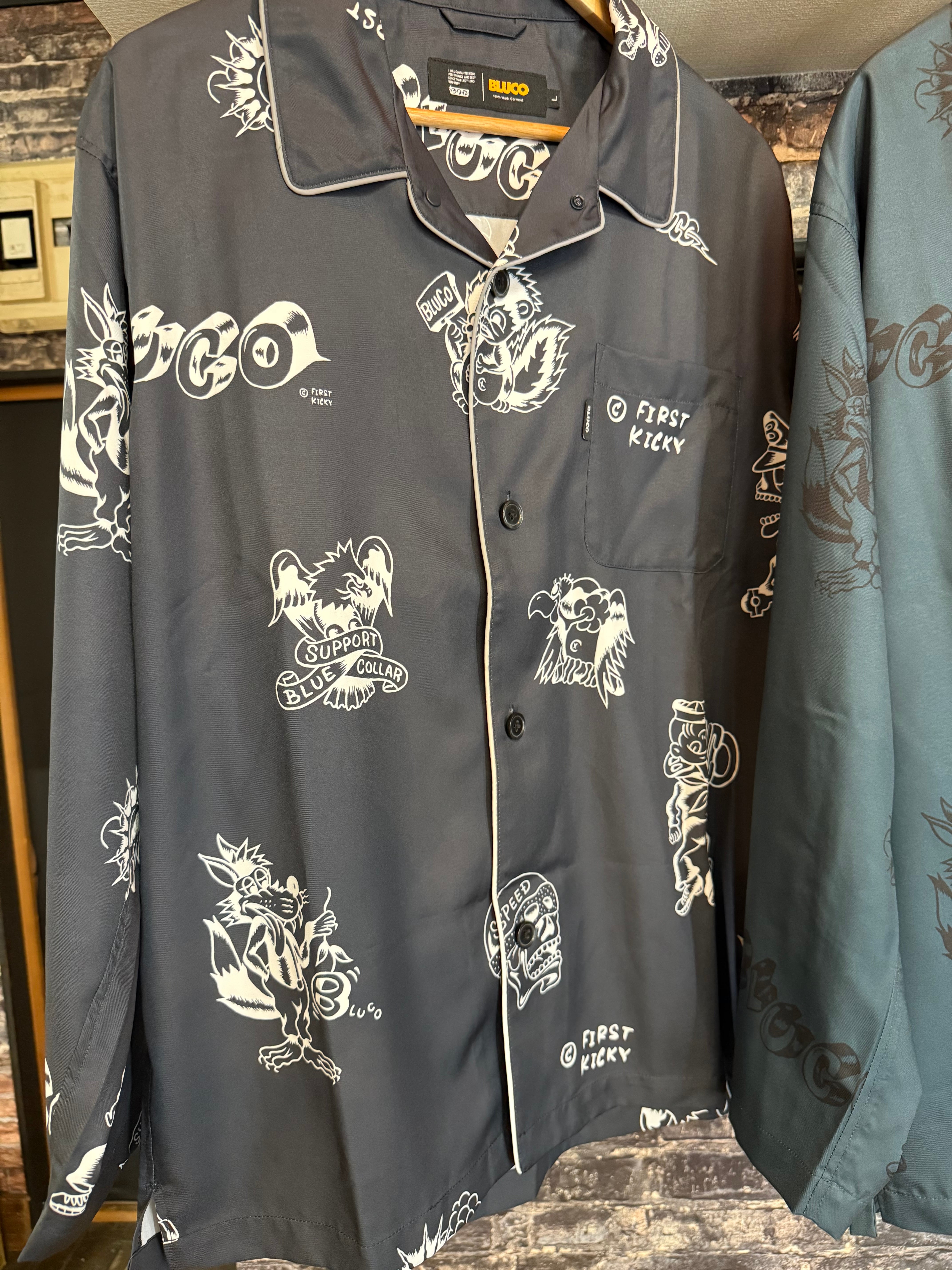 パジャマシャツをオマージュし、快適に着用できるシャツをリリースしました。新鋭タトゥーアーティスト"First Kicky"によるタトゥーフラッシュを全面にプリントしています。パイピングにはリフレクターテープを使用しています。