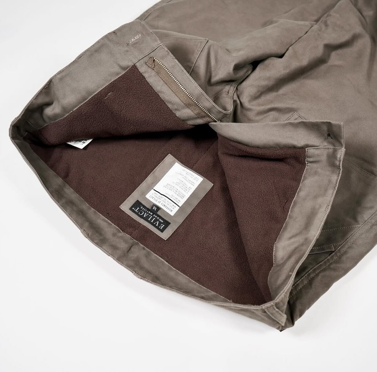 厚手のコットンモールスキン生地をアウトシェルに、裏地には肌触りの良いマイクロフリースを搭載したM-47型、通称