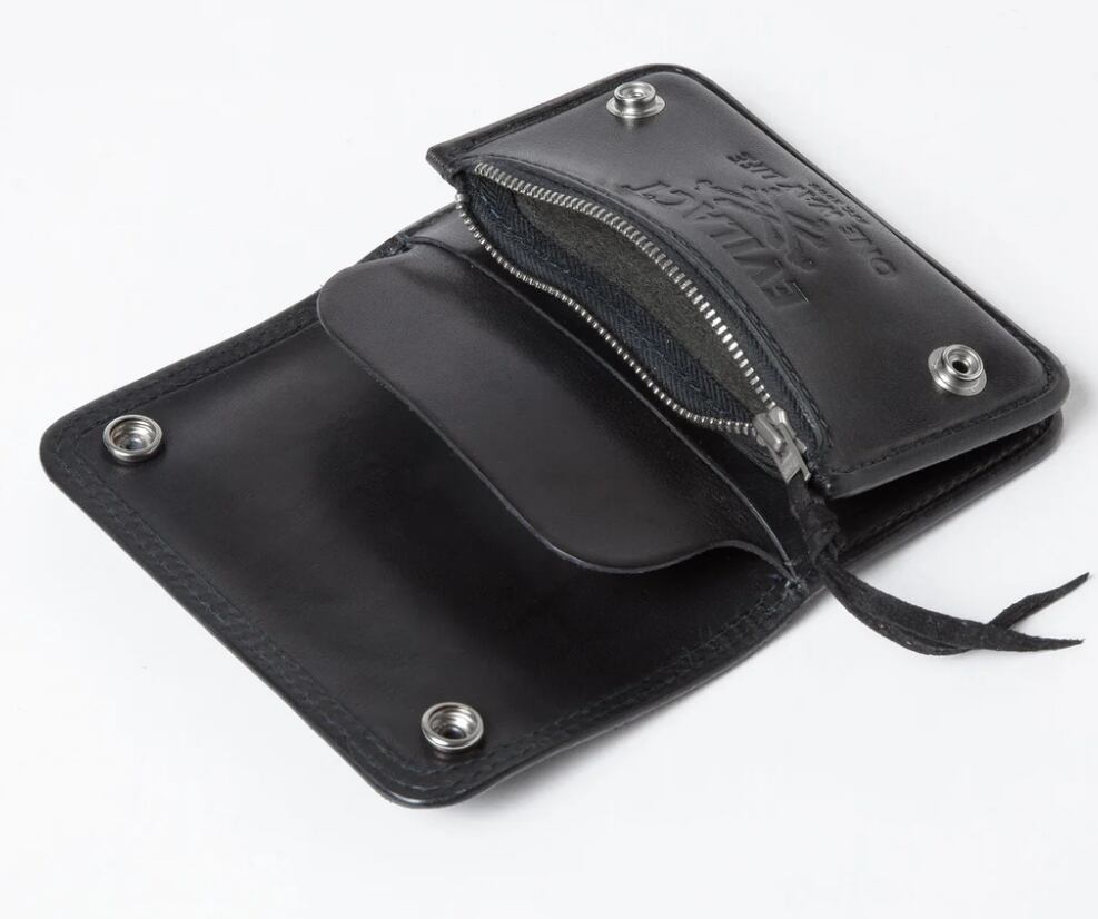 上質な国産レザーで作成したミドルウォレット、内側にEVILACT の刻印。