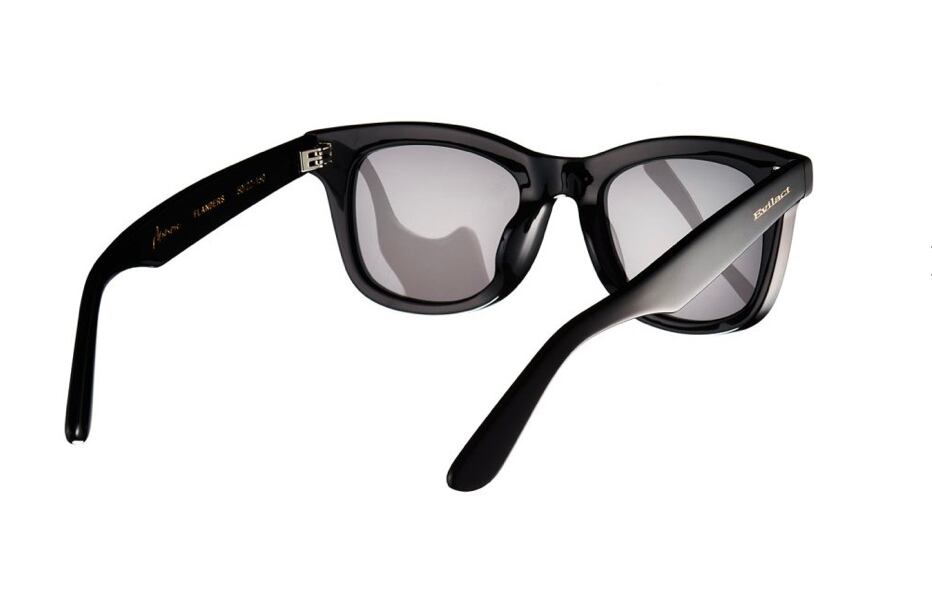 ブロー部とブリッジに3Dカットを施し、テンプルにEVILACTのエンブレムが埋め込まれた"フランダース"。